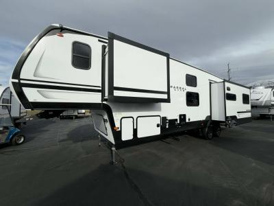 Each model features the perfect balance of aluminum cage construction and Turn Tech engineering to bring you a fifth wheel with optimum towability. You will have a variety of floorplans to choose from to fit your needs best, including models with single, double, or even triple slides for maximum space. There are packages that are packed with features to make each camping trip enjoyable, including the Weather Shield + that will allow you to camp all year long, the Solar Source + for off-grid capabilities, and the Road Guardian + for smooth towing!