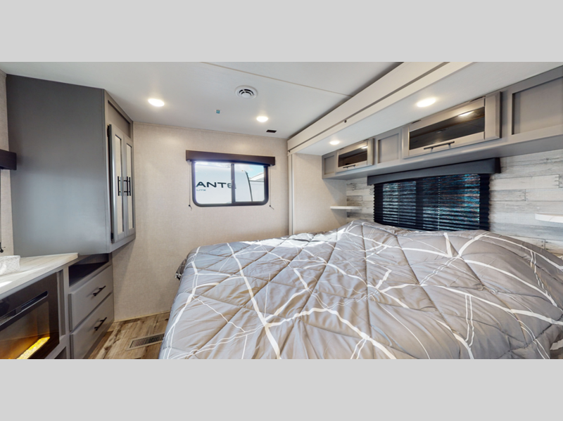 Each Volante is constructed with a fully enclosed and forced air heated underbelly that will extend your camping season, and you're going to love the sleek look of the fiberglass front cap. Power stabilizer jacks make setting up camp easier than ever, and there is a power awning with LED lights so you can relax under once everything is unloaded from the truck. Head inside to find stainless steel appliances, premium residential furniture, a cozy fireplace, and many more comforts of home.